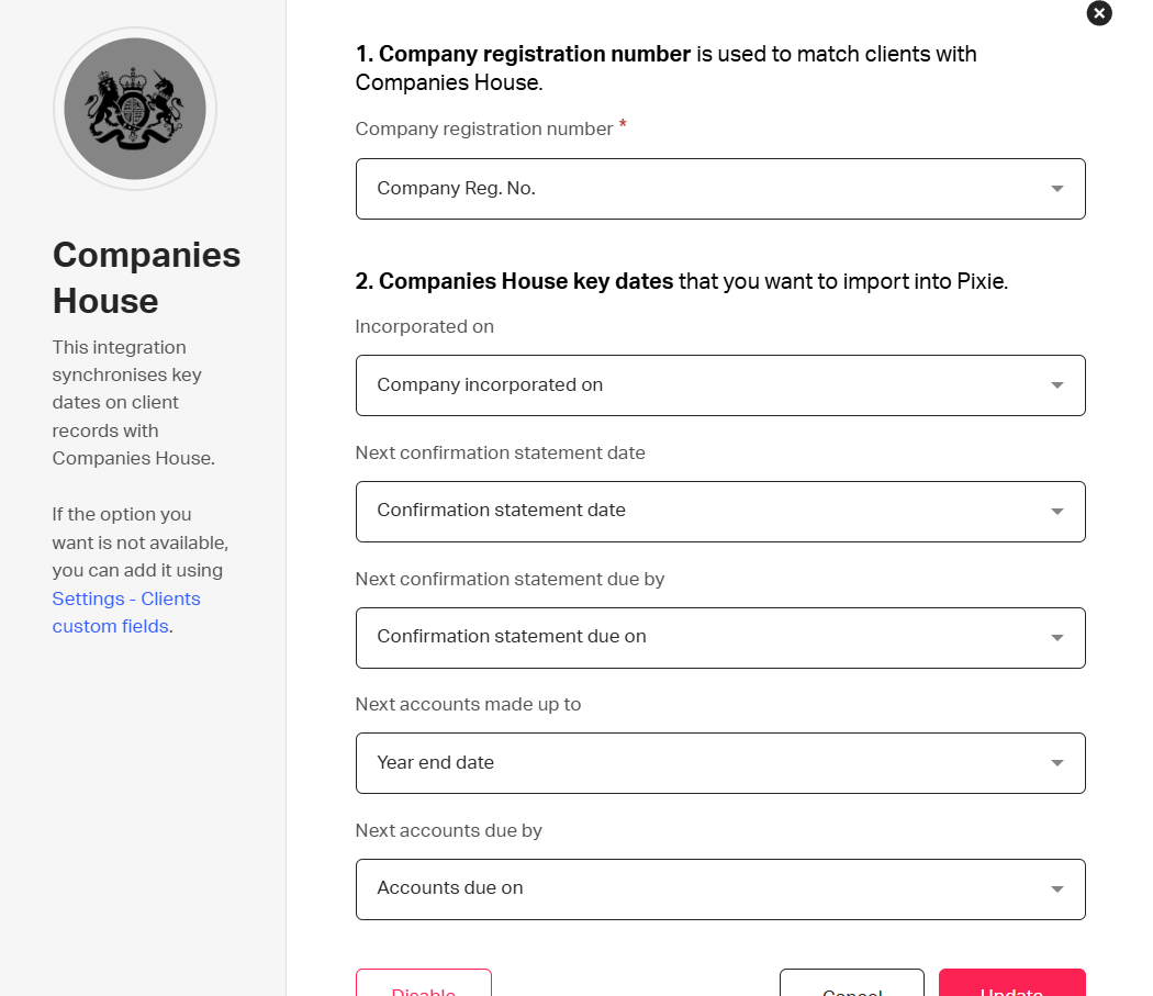 In order to add and update clients from Companies House (UK firms only), an admin user will first need to set up the integration.