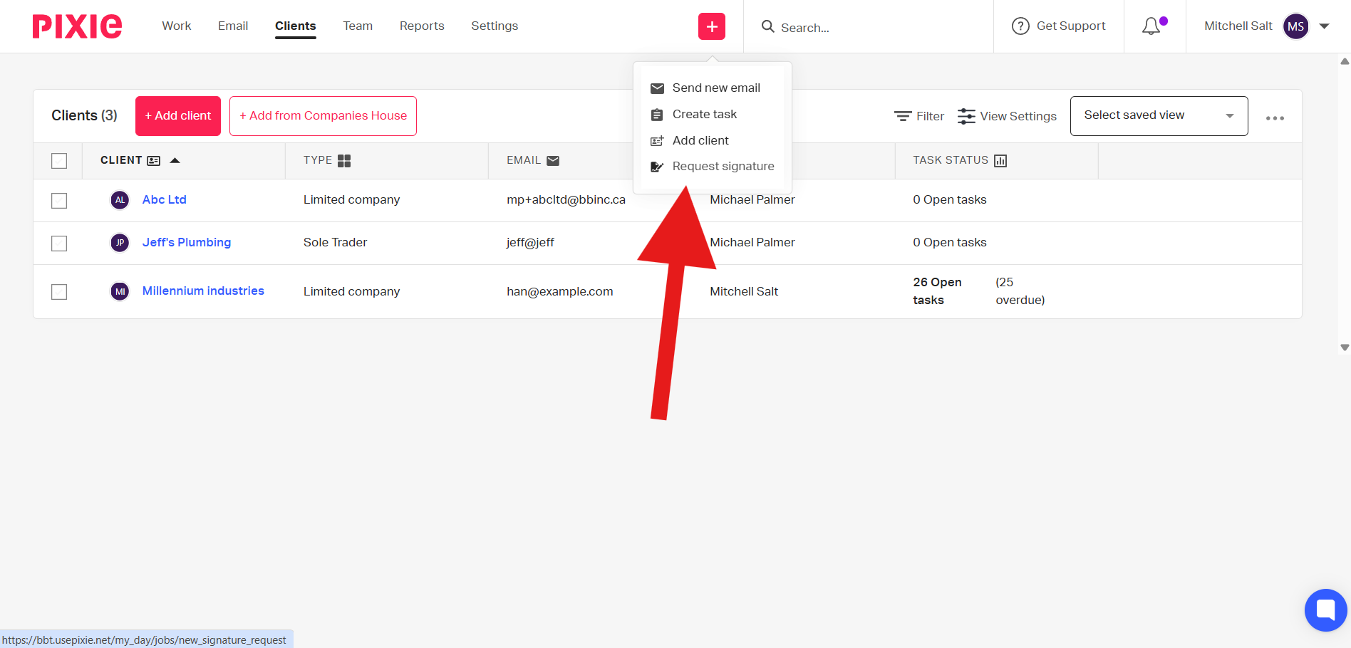 All signature requests are saved to the client’s record and the relevant task in Pixie, making it quick and easy for you to find them. This means that they also show up under your work tab.